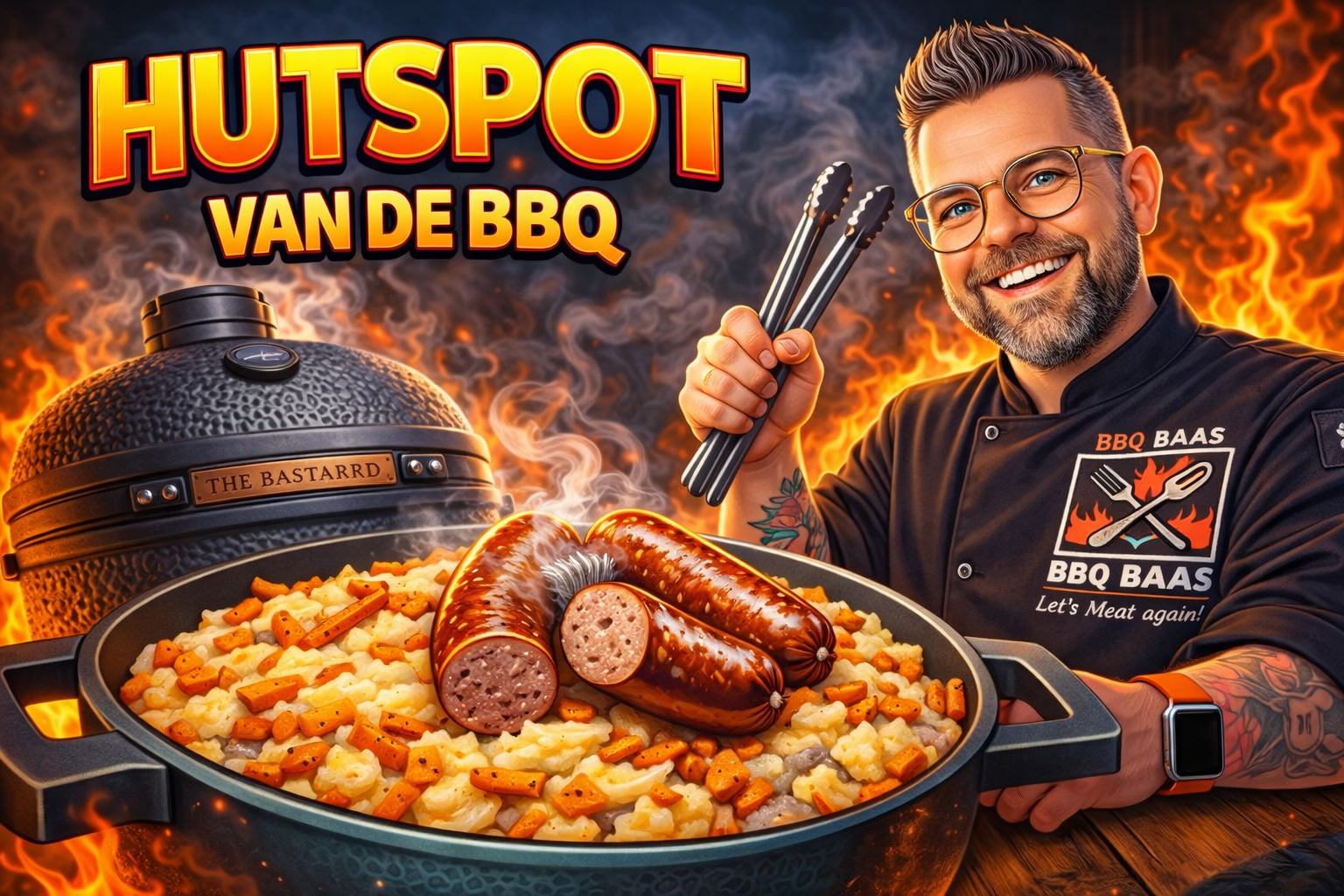 Hutspot… maar dan next level. In deze video maak ik een eigentijdse hutspot op de BBQ, boordevol smaak, rook en comfort. Geen saaie stamppot, maar een krachtige BBQ-versie met gekaramelliseerde ui, balsamico, sambal, spek en Texas Style BBQ-worsten.